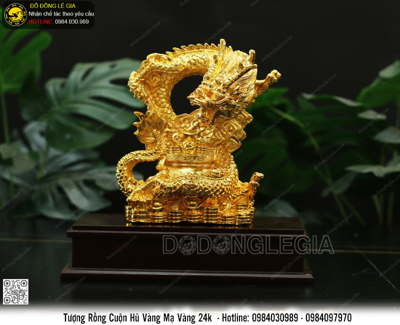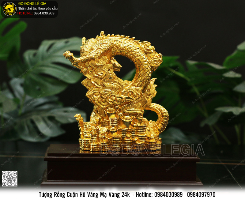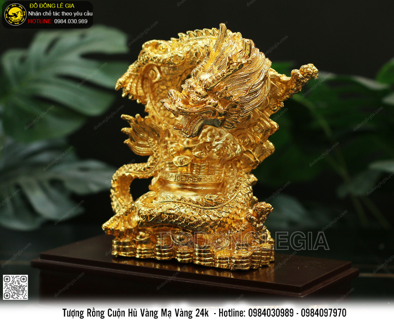 | Tên sản phẩm: | Tượng Rồng Cuộn Hũ Tiền Mạ Vàng 24k |